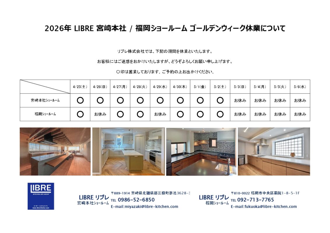 リブレショールーム、ゴールデンウィークの休業をお知らせいたします。
